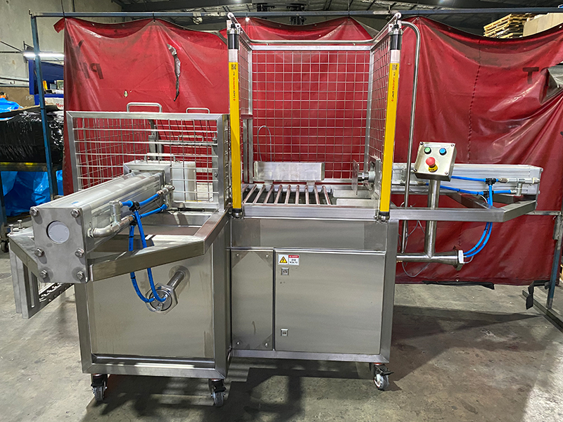 Our Machines can be Pneumatic or Hydraulic powered and all machines have Electronic Light Curtain Guarding. Infeed and outfeed conveyors can also be installed.
