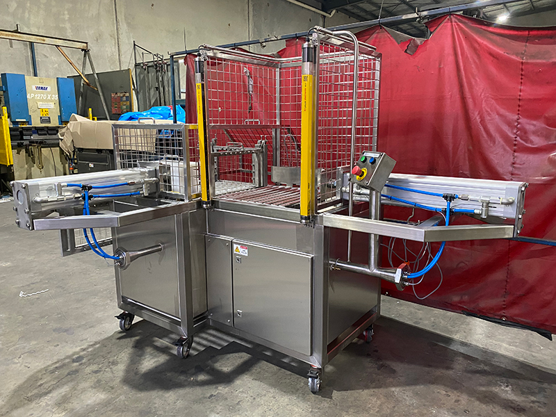 Our Machines can be Pneumatic or Hydraulic powered and all machines have Electronic Light Curtain Guarding. Infeed and outfeed conveyors can also be installed.
